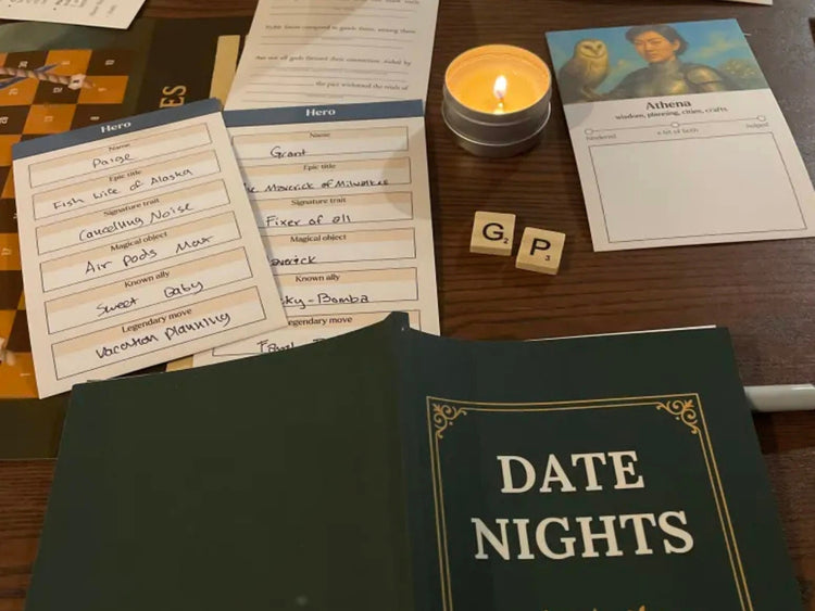 Four carefully crafted date nights that unfold week by week. Each one is 60-90 minutes of playful, surprising, heartfelt connection. You’ll laugh, reminisce, and turn your love story into a keepsake album.