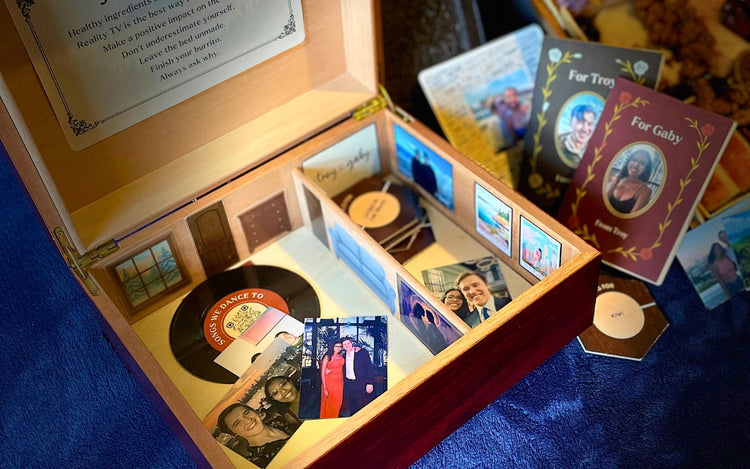 Celebrate your love story with a personalized experience you’ll both remember for years. We'll turn your memories and inside jokes into a room-in-a-box designed around the two of you. Kind of like an escape room in a box, mixed with a picnic and a hug.