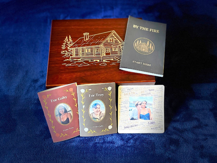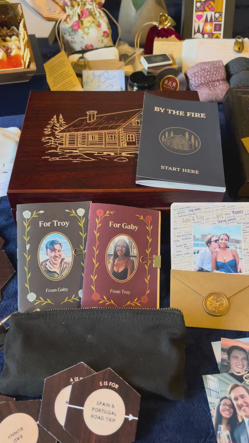 Each Anniversary Box is built on one of our signature experiences, called “By the Fire.” It's a warm, sentimental structure we've refined over years.
